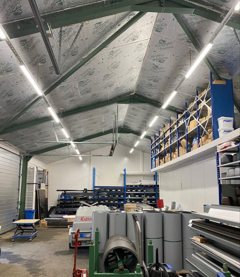 Laukaan kattotyö Oy:n tiloissa näkee nyt työskennellä, kun tilaan asennettiin Jyväskylän Jyrkin toimesta Tungsramin 49w led mariner – valaisimet. Hyvä led valaistus parantaa työoloja ja turvallisuutta, sekä kuluttaa huomattavasti vähemmän energiaa kuin perinteiset loisteputket tai monimetallilamput.